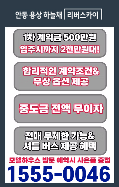 안동 용상 하늘채 리버스카이 방문예약 고객의 개인정보를 수집합니다. 수집한 개인정보는 방문예약 이외의 목적으로는 사용하지 않으며, 모집 기간 완료 후 즉시 파기합니다. 개인정보의 수집 및 이용에 대한 동의를 거부할 수 있으며, 이 경우 방문예약 접수가 어려울 수 있습니다.